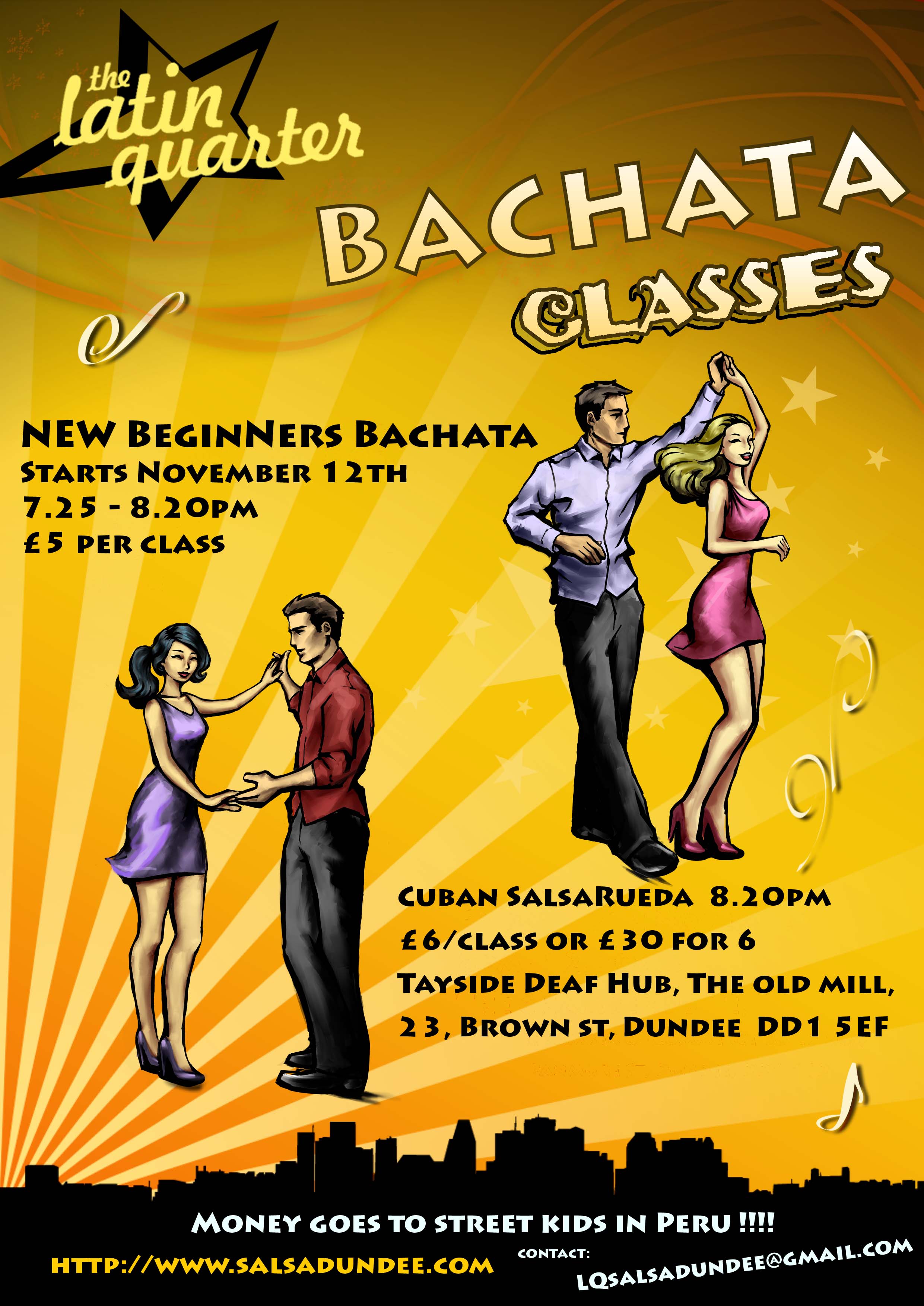Latin Quarter New Bachata Fusion Classes , 4 week block @ The Deaf Hub, 7.25pm to 8.20pm Tuesdays starting 12th Nov, £5 a class. CASH only, please come 10 min early to register and pay. Class will be open to total beginners for first week only. But there will be something for improvers too.Other classes will be on as usual :