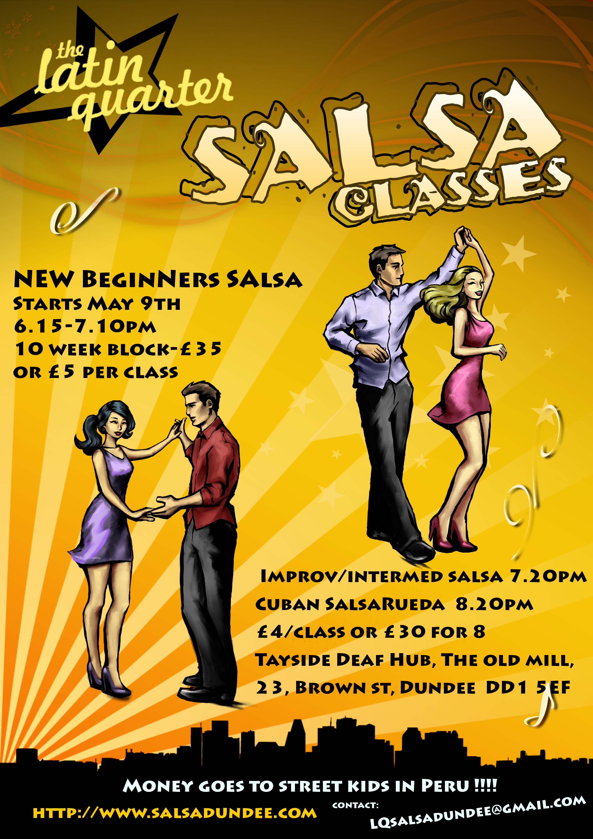 There will be a bar and a raffle too. Raffle prizes are gratefully appreciated. See www.salsadundee.com for more details. Please pass the word, pop a poster up if you can, everyone welcome.
