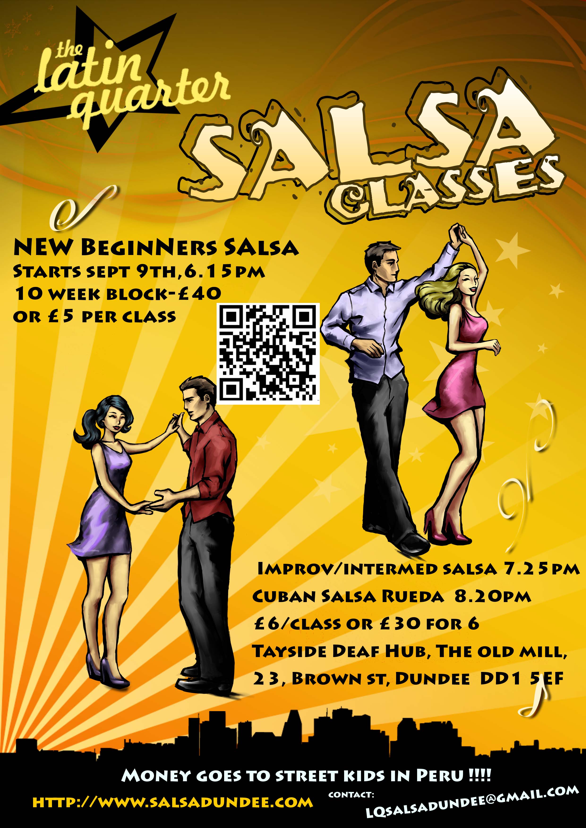 LAST week to join Latin Quarter Beginners Salsa class Tuesday  16th September, 6.15-7.15pm, at The Deaf Hub, Old Mill, 23, Brown St, Dundee. DD1 5EF..