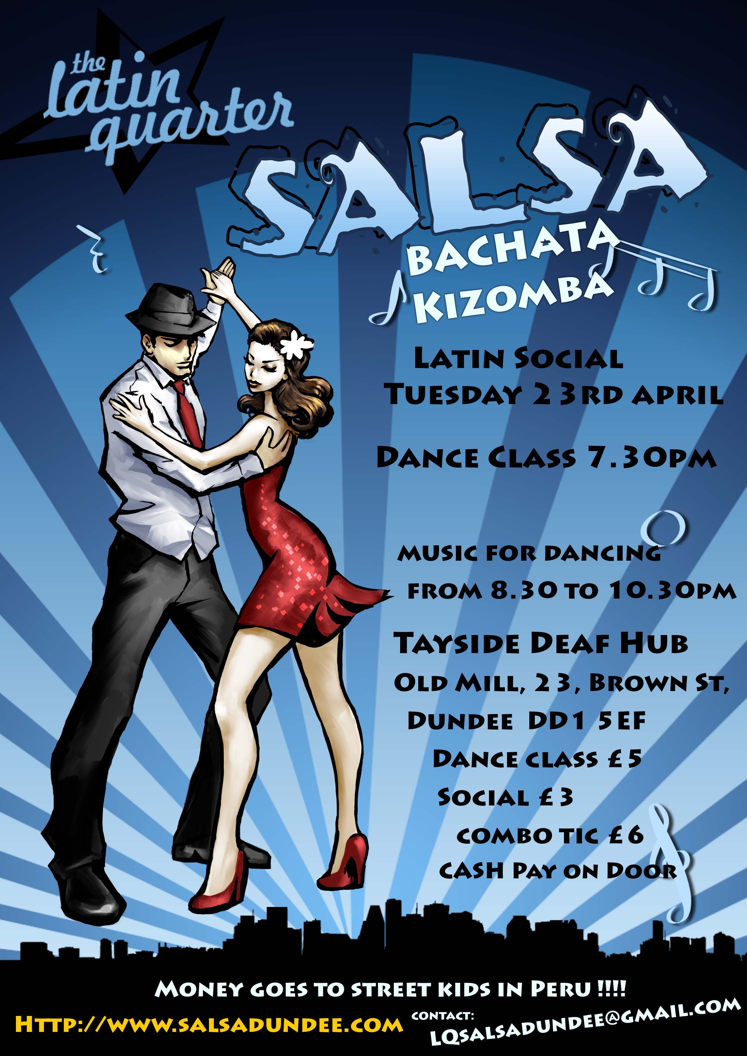 Last week to join the NEW Latin Quarter Beginners Salsa class this Tuesday 23rd April, 6.15-7.15pm, at The Deaf Hub, Old Mill, 23, Brown St, Dundee. DD1 5EF.